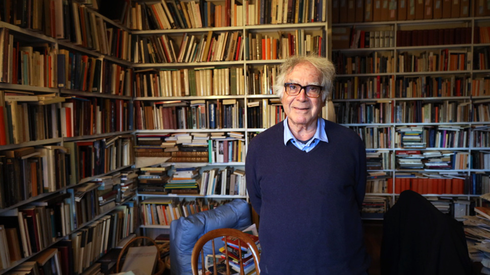 Carlo Ginzburg mi aspetta sulla porta e mi accoglie a casa: libri, libri ovunque, in pile e mucchi su tavoli e sedie, colonne di carta sormontate da soprammobili che si fingono fermacarte. Libri che occupano ogni superficie libera e sembrano formare cunicoli, passaggi. “Sei già stato qui?”, mi chiede la sua voce, ma il professore è già sparito in un corridoio, tra pareti di volumi, dove m’invita a seguirlo.