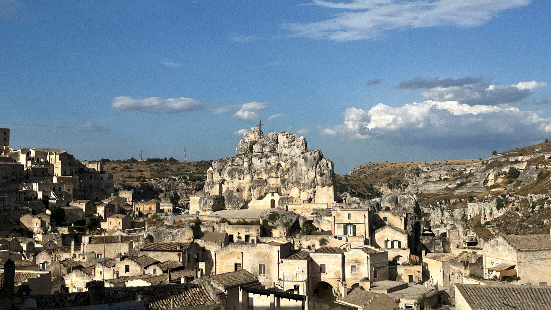 Per andare da Matera all’aeroporto di Bari-Palese, è palese anche non c’è un collegamento ferroviario, e per questo dovrò usare il trasporto su gomma, attualmente l’unico modo per spostarsi in zona. Il tema ferroviario è un pulsante che attiva automaticamente conversazioni molto accese qui in città. “Anche se la nuova stazione è di fatto l’unica vera eredità strutturale di Matera 2019,” mi dice Lisanti, “i problemi sono mille”. E mille sembrano essere anche i progetti fermi al binario morto di Matera. La nuova stazione disegnata da Stefano Boeri (che secondo qualcuno assomiglia un po’ troppo a un altro progetto, quello realizzato da Studio Valle Architetti Associati per piazza Portello a Milano) fu inaugurata il 13 novembre 2019, a un mese dalla conclusione del programma della Capitale europea, creando ovvi disagi per i primi undici mesi del mega-evento. A molti è sembrato che in questo frangente Matera abbia letteralmente perso un treno. Del resto, ancor oggi non è terminato il parcheggio sotterraneo; e così anche il parco urbano sovrastante – che nel disegno di Boeri conterà novemila arbusti – è rimasto ancora sulla carta lucida da architetti. L’elettrificazione è tuttora una chimera (“e quando sarà terminata riguarderà solo la tratta Matera-Altamura”, mi spiega ancora Felice, “cosicché chi viaggia dovrà cambiare treno per proseguire”); come pure la promessa eterna della tratta di una manciata di chilometri che dovrebbe unire Matera a Ferrandina e quindi alla rete ferroviaria nazionale anziché solo alle FAL: le Ferrovie appulo-lucane, il cui nome tradisce un certo coté non attualissimo, evidenziato anche dal singolo binario e dai relativi tempi di percorrenza. Per i circa sessanta chilometri che separano Matera e Bari attualmente ci vuole un’ora e quarantadue minuti. Grazie a importanti investimenti, annunciati con enfasi dalla Regione Basilicata, da qui al 2033 si ridurranno a un’ora e venticinque. Non proprio un bullet train, se non per gli immaginabili istinti suicidi dei pendolari.